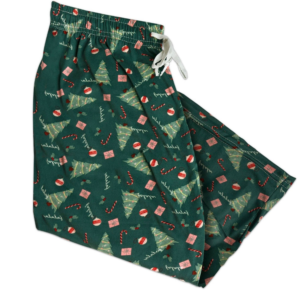 Hello Mello Holiday Lounge Pants Green Fa La La Pattern
