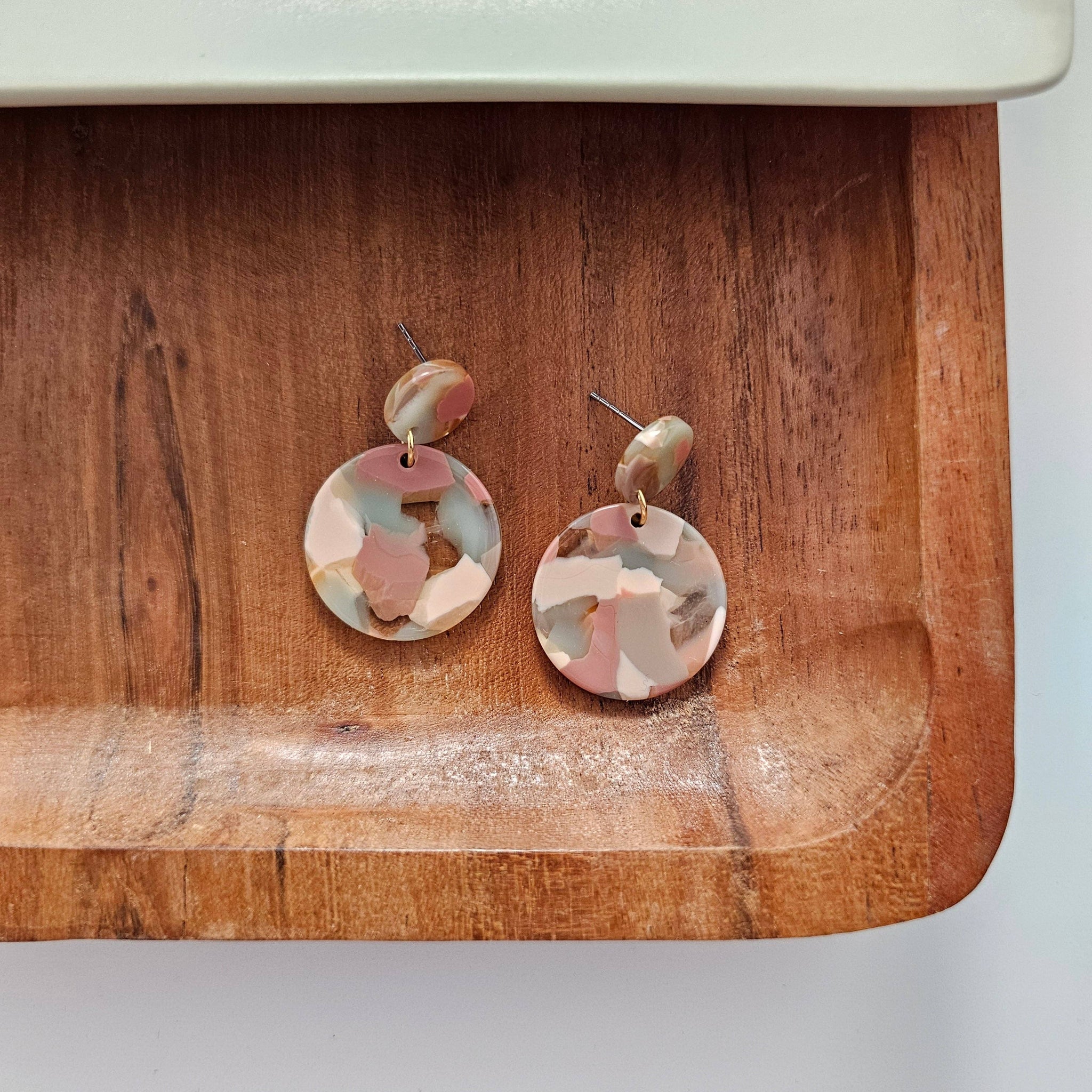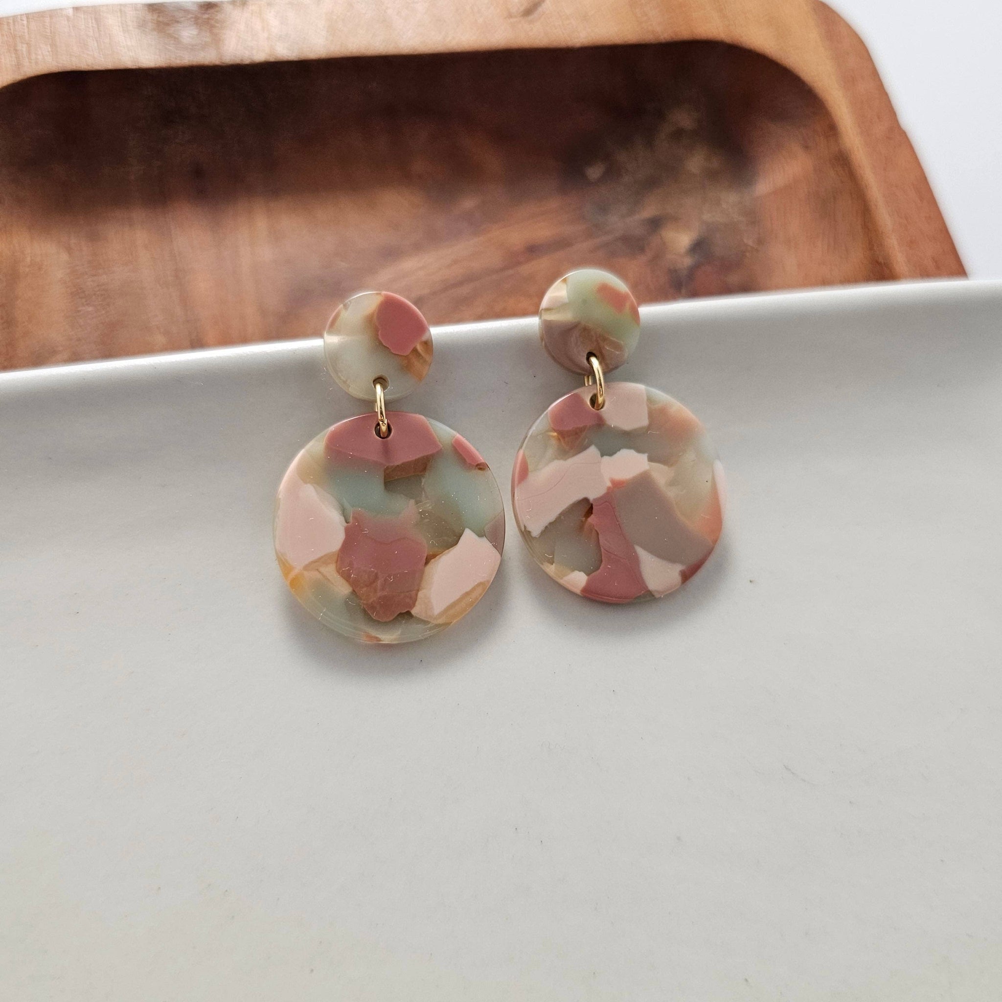 Addy is our chic and ultra lightweight monochromatic style with matching studs and charms. Camo Chic is a unique color filled with variations of earthy colors.