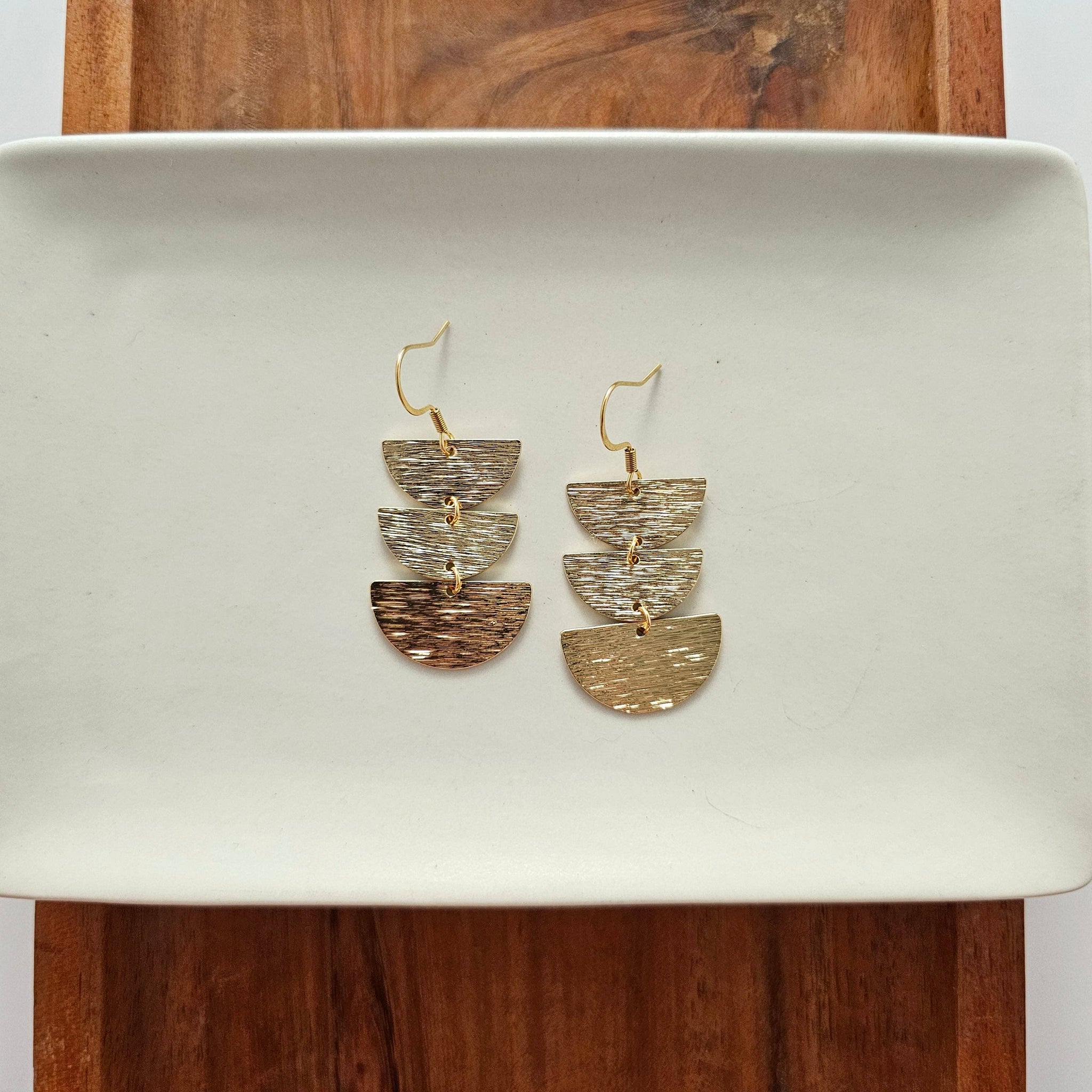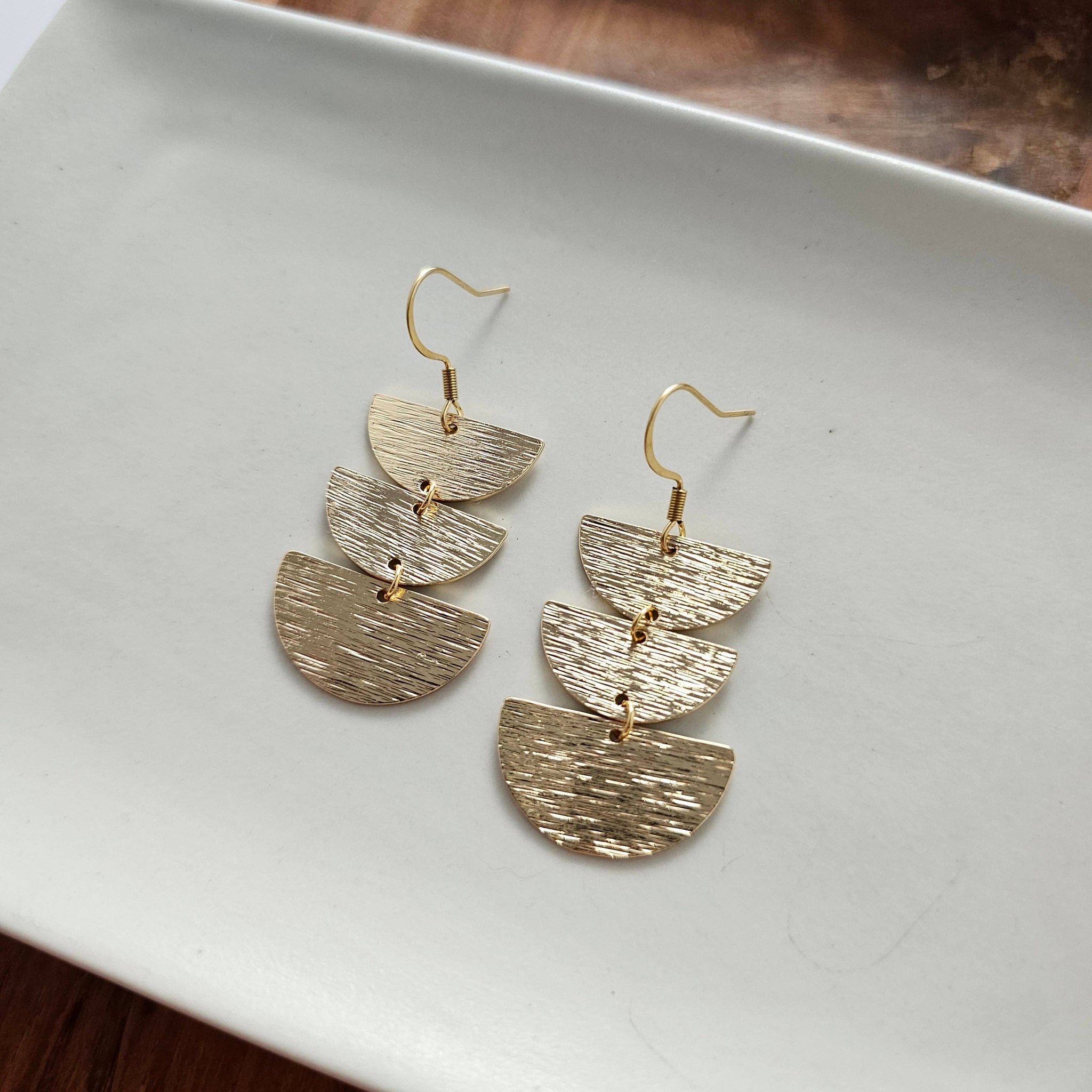 Upgrade your earring game with the Kinsley Earrings in Gold! Featuring a triple tiered design, these statement earrings will add a touch of luxury to any outfit.