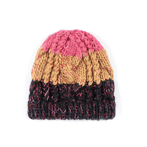 This hat features a cozy knit texture in a multi color stripe design. Made from Acrylic. So adorable!