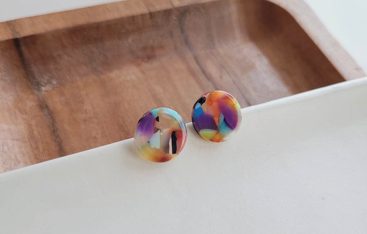 Sophie Stud Earrings are circle shaped studs that come in a variety of colors. Great everyday style! Coloring on each pair is completely unique!