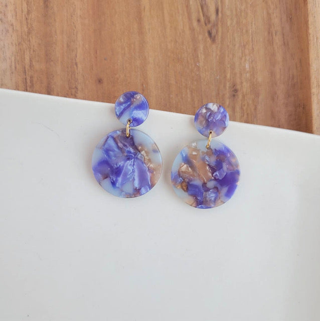 These earrings are a chic and ultra lightweight style in a perfect combo of stone & navy.