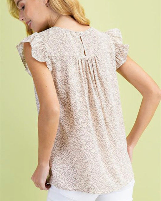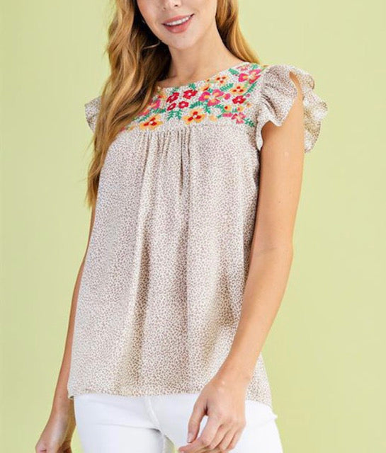 Tiny flower embroidery ruffle top in ivory! A great piece for spring and summer! Dress up with white or pair with denim for a more relaxed look!