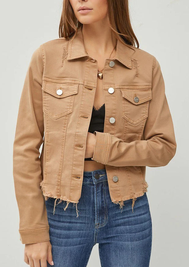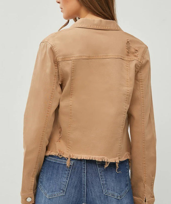 Your new favorite denim jacket in a great neutral mocha color!  Perfect stretch!  Runs true to size   92% Cotton, 6% Polyester, 2% Spandex  Read more