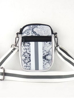 Grey Snake Multi Zipper Neoprene Crossbody/Phone Holder. Perfect mini bag! Can fit a bottle of water or a cell phone!