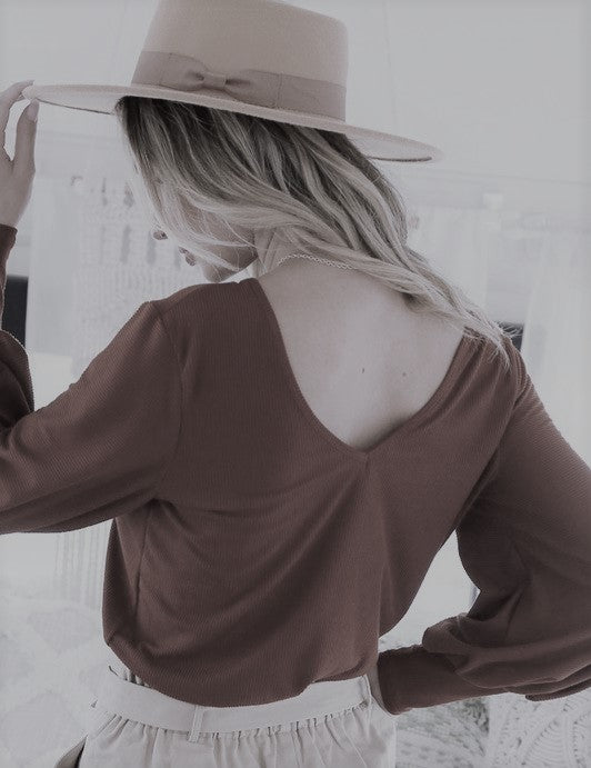 V Neck Puff Long Sleeve Knit. Comfortable fit. Elevated style.