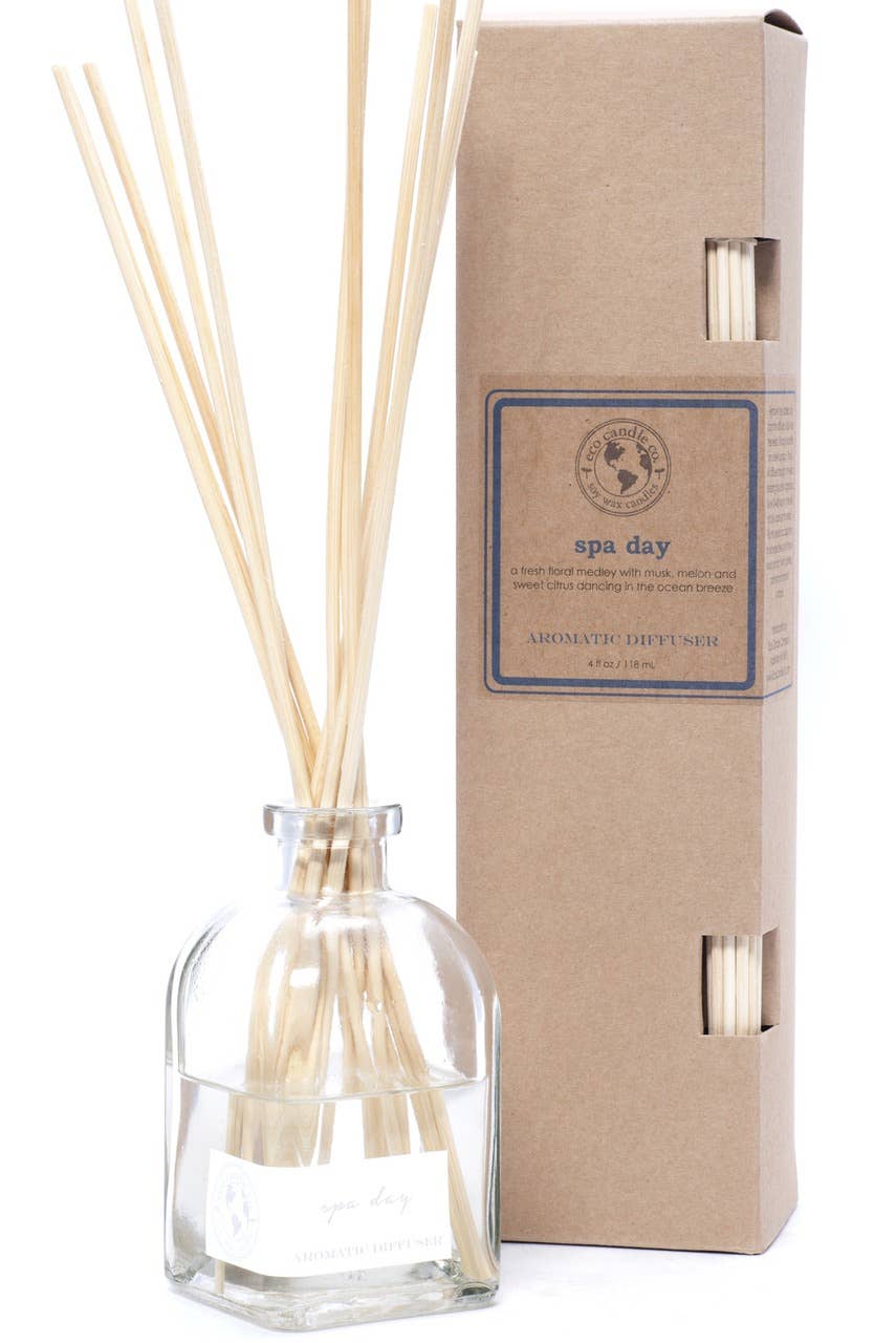 Spa Day scent description: A fresh floral medley with musk, melon and sweet citrus dancing in the ocean breeze. Attractive clear glass jar with 4 ounces of premium fragrance oil and 12 reed sticks packaged in a recycled...Read more