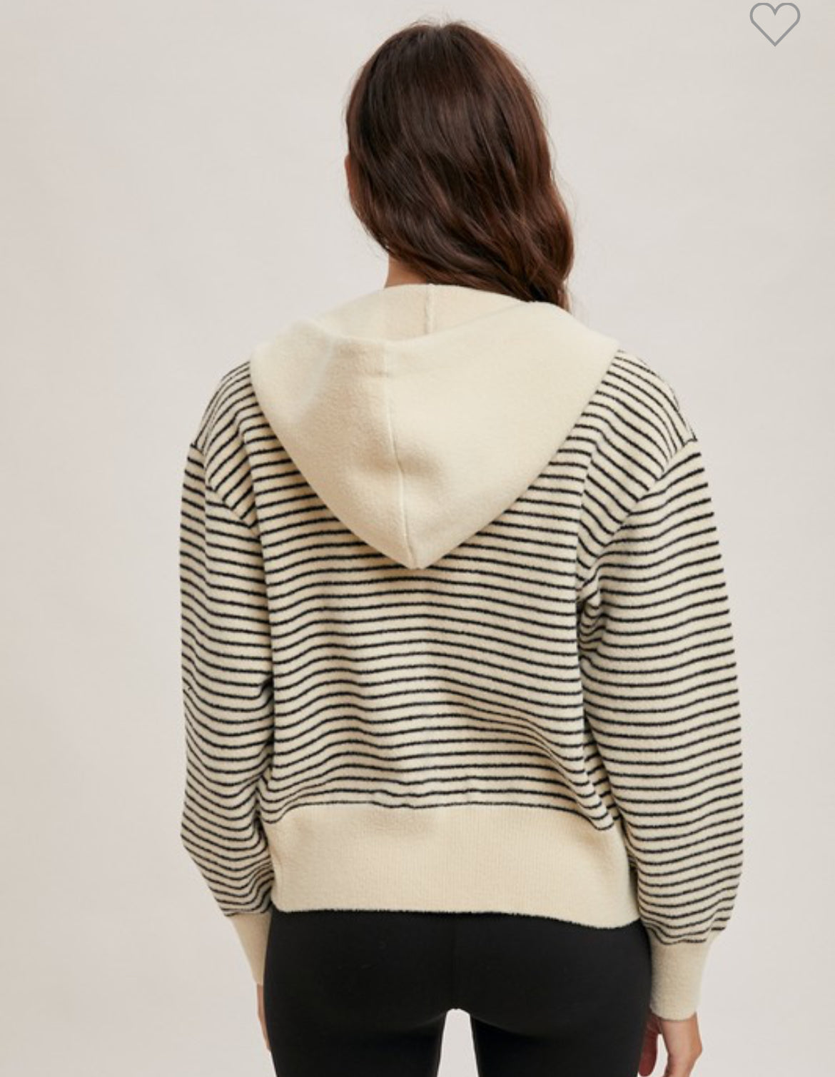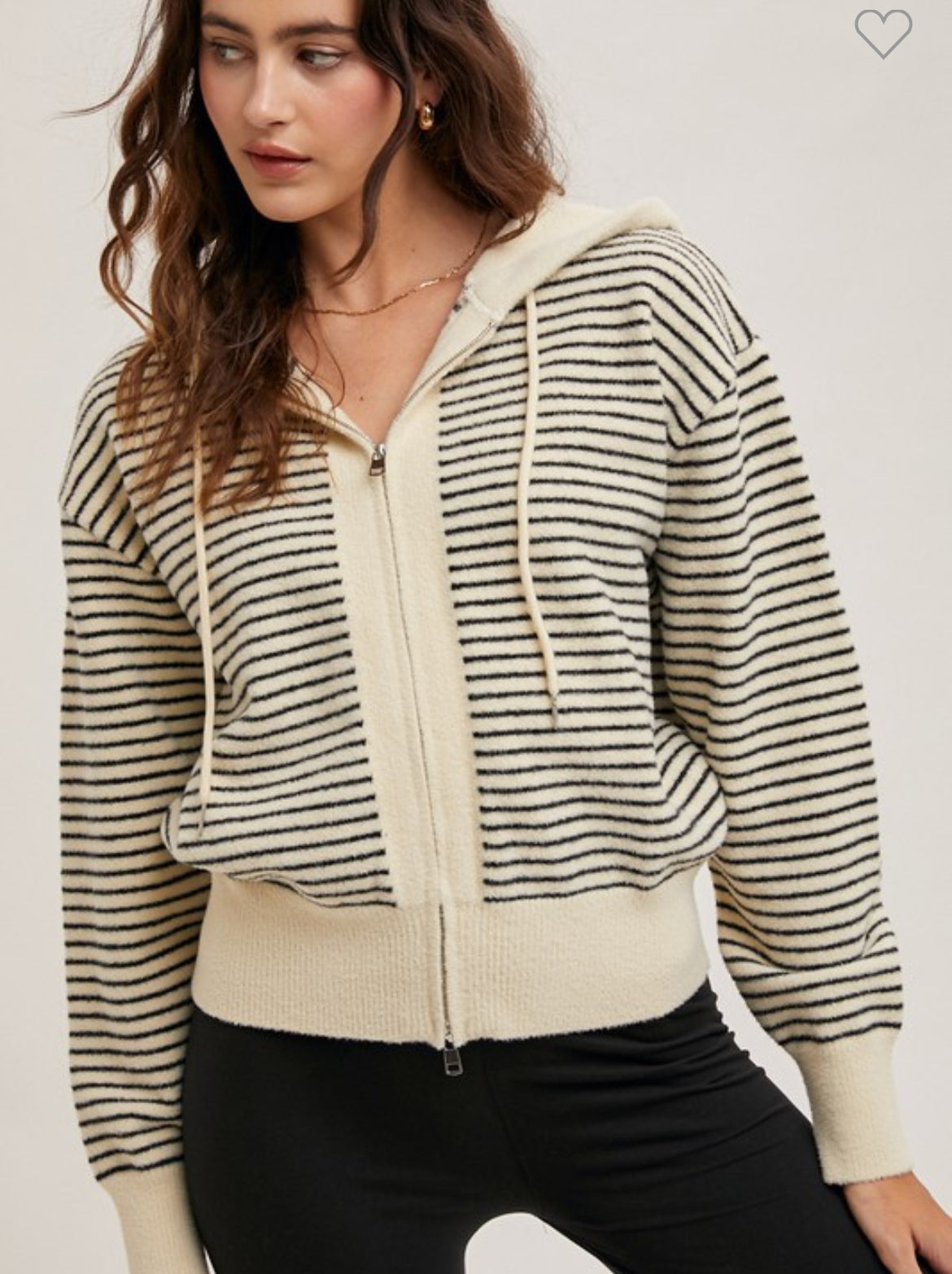 Oatmeal and black striped zipper hoodie jacket. Adorable and a perfect layering piece!