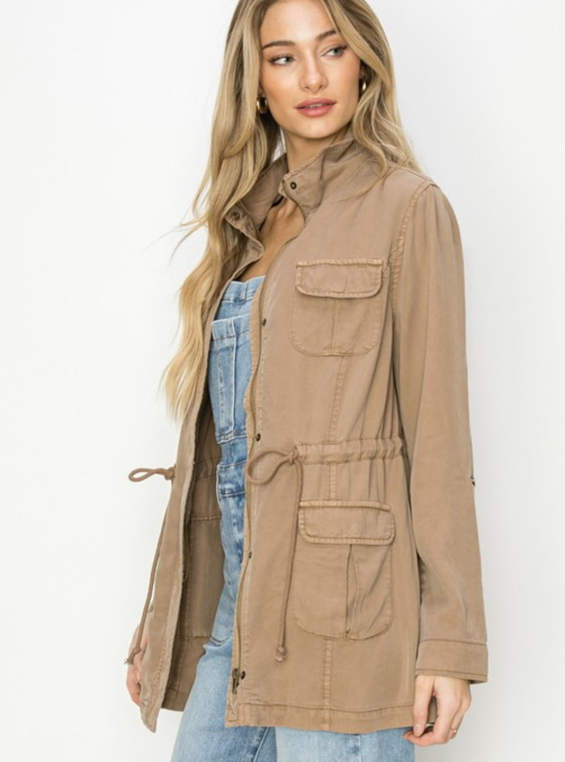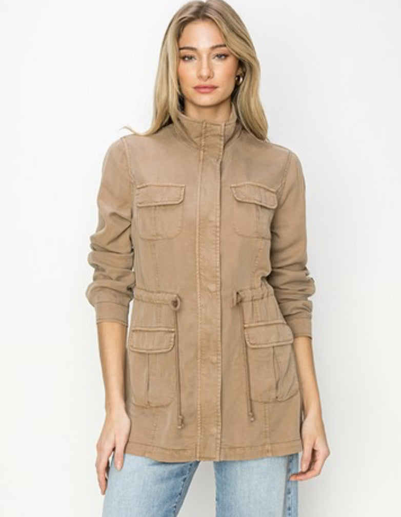Amazing tencel anorak jacket in a beautiful tan/sepia color! A wardrobe staple!