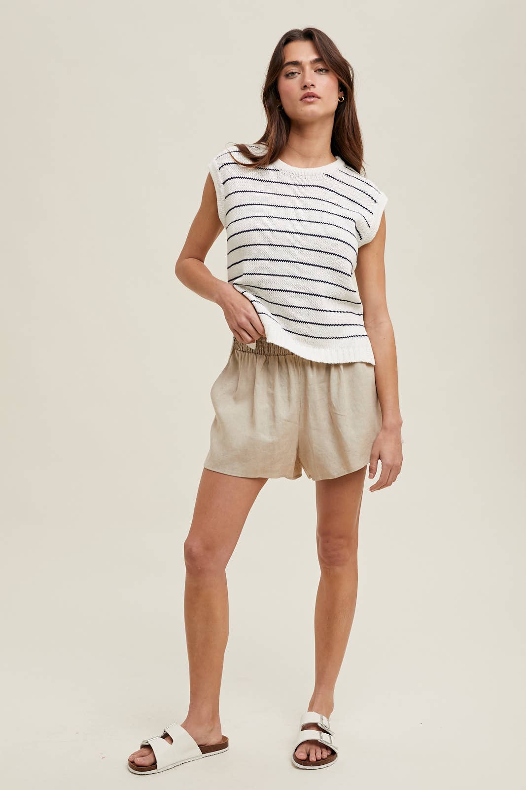 LINEN SHORTS WITH SIDE SLITS - SMOCKED WAISTBAND - SIDE POCKETS SMALL: INSEAM LENGTH - 3"